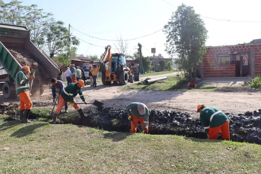 Los trabajos se llevaron adelante con una retroexcavadora, dos camiones volcadores y dos cuadrillas de zanjeo con pala; en una acción se planificó en cuatro jornadas de trabajo luego de que se detectara el anegamiento que existía en las calles, con el agua que desbordaba las zanjas.