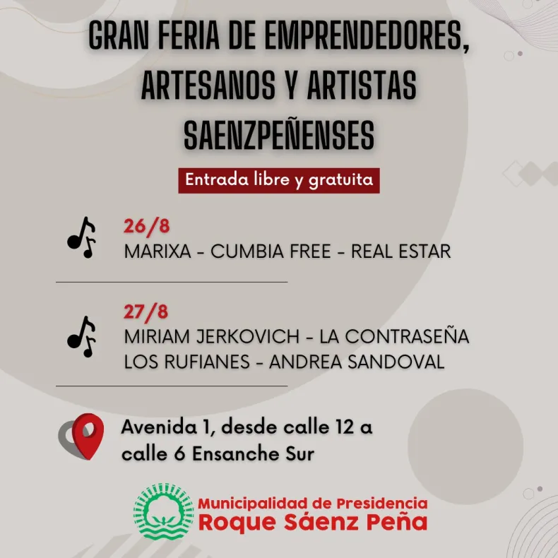 La entrada es libre y gratuita, se puede concurrir con banquetas. Además, habrá feria de emprendedores y artesanos locales quienes exhibirán sus productos en el lugar.