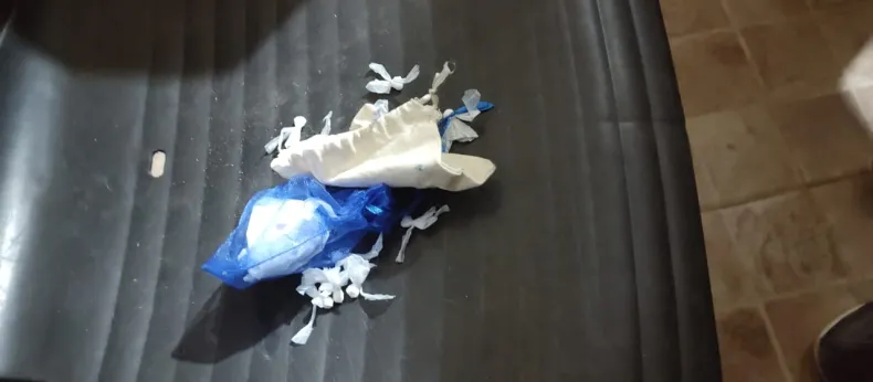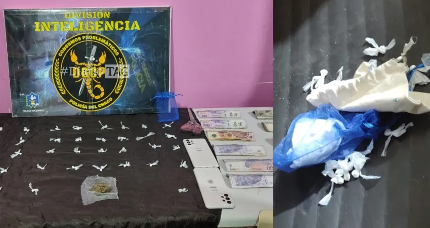 Hallaron 35 envoltorios con cocaína y un envoltorio con marihuana listos para ser vendidos. Procedieron al secuestro de las sustancias, como así también de varios recortes de polietileno, una tijera, dos celulares y la suma de $ 13.000 pesos.
