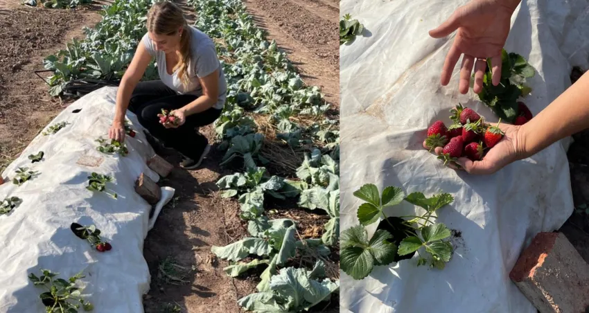 Como prueba de las prácticas de los estudiantes, se cosecharon frutillas con proyección a continuar con dicho proceso. Además, cosecharon verduras habituales como espinacas, acelga, pimientos, tomates, rabanitos, remolachas, zanahorias, rúcula, perejil, cebolla de verdeo y los participantes ya se están preparando para la producción de la nueva temporada primavera-verano.