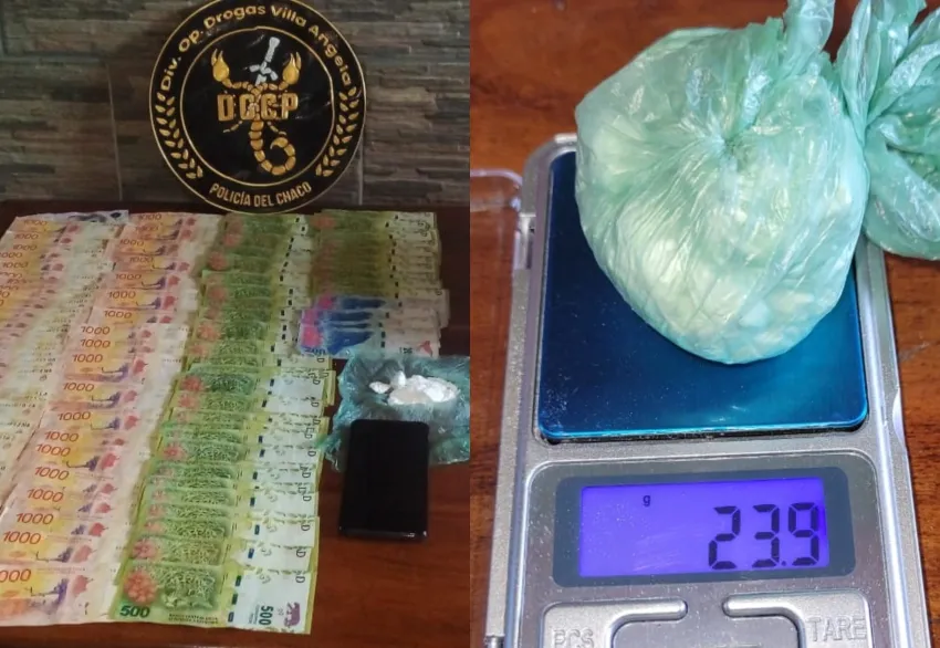 El personal policial arribó al domicilio ubicado sobre calle Baigorria, y allí secuestraron un envoltorio con 23,9 gramos de cocaína que se presume estaba listo para ser comercializado, un celular Samsung A13 y una suma total de $ 70.300.