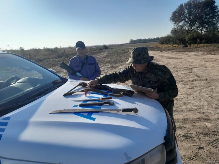 Al finalizar, incautaron un cartucho calibre 16, un machete, un cuchillo de fabricación casera y una Keller 110 que fue abandonada por un hombre con escopeta al ver a los policías. También secuestraron un rifle de aire comprimido calibre 22.
