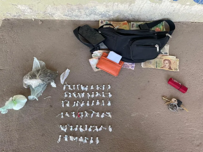 Tras solicitar la colaboración del personal de Consumos Problemáticos y realizar la prueba de campo, se comprobó que llevaba narcóticos. En total, los estupefacientes secuestrados fueron 58 bochitas de cocaína fraccionadas y listas para su venta, un trozo compacto verde que se trataba de cannabis y $ 4790 de dinero en efectivo.