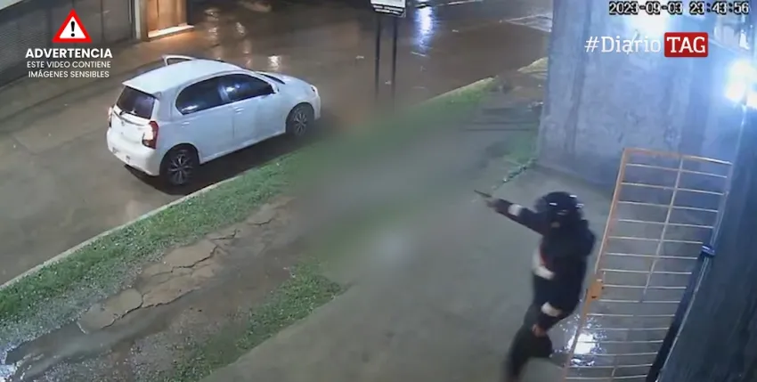 Siguiendo esta línea, el joven emprendedor se dirigió hacia el local luego de verificar que estaba siendo víctima de un robo. En la cámara de seguridad se puede observar que, al arribar con su auto, tres delincuentes salen corriendo y de paso comienzan a atacar al comerciante a balazos.