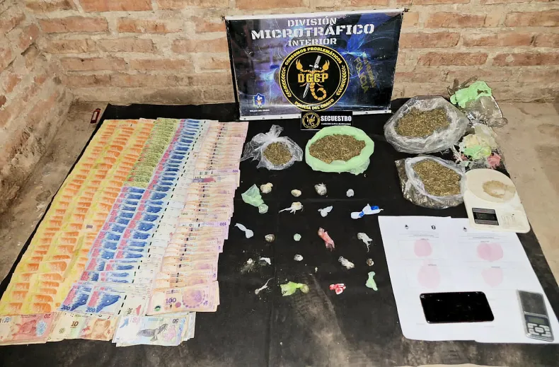 En la casa los efectivos hallaron 4 paquetes de cogollos de marihuana y un envoltorio que contenía 21 bochitas de la misma sustancia, con un peso total de 809,8 gramos. Asimismo, se hallaron 127.850 pesos, una balanza de precisión y un celular.