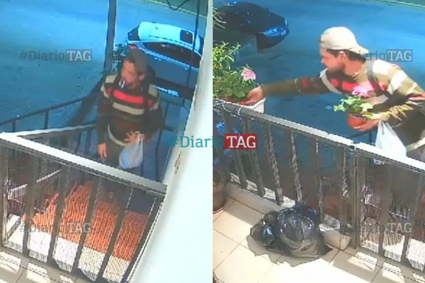 En las imágenes se puede ver a un hombre, con un cigarrillo en la boca, acercarse a la puerta de la casa como si nada y proceder a llevarse dos macetas con flores, que adornaban el frente de la vivienda. El accionar no duró más de 15 segundos y, luego de ello, el hombre se retiró del lugar con tranquilidad.