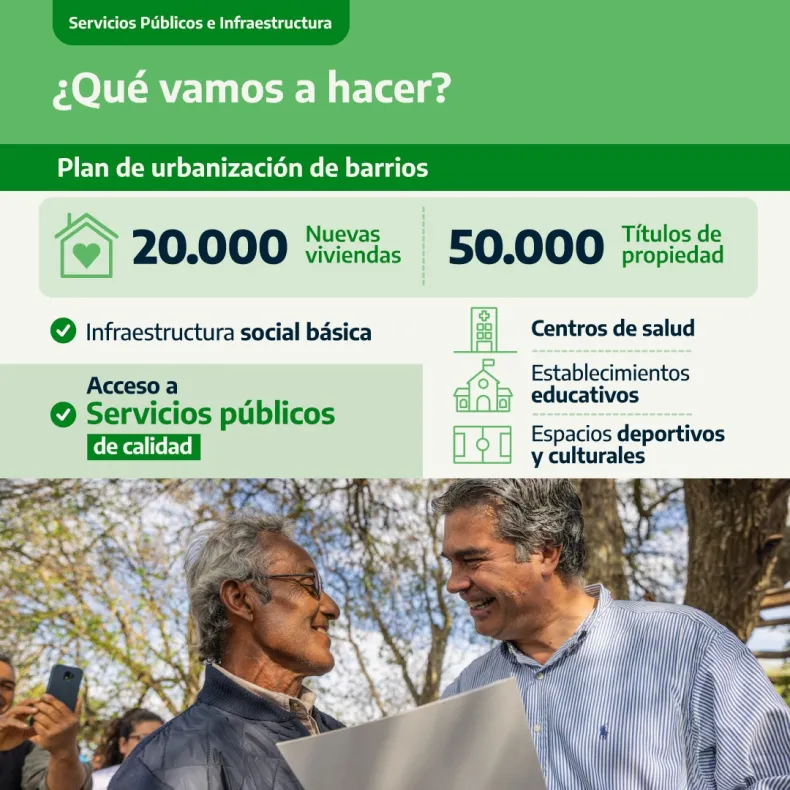 El gobernador y candidato a la reelección por el Frente Chaqueño propone la entrega de 50.000 títulos de propiedad urbana, 20.000 viviendas y la generación de 200.000 empleos privados formales en 20 cadenas de valor de la economía productiva.