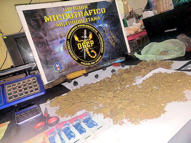 Dentro de la casa se encontró e incautó 10 envoltorios de distintos tamaños, que contenían marihuana, con un peso total de 177 gramos, dinero en efectivo por la suma de $ 9.390, una balanza digital de tipo comercial, un celular, dos blister con pastillas clonazepam, varios recortes de bolsas para la preparación de las dosis y un arma de fuego casera tipo tumbera con un cartucho calibre 16.