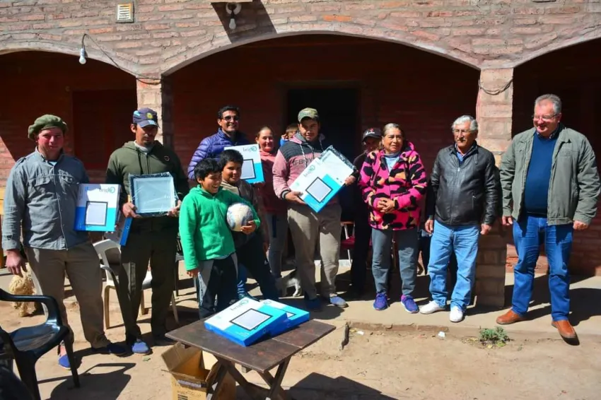 El intendente de Castelli entregó reflectores para iluminar los potreros del Paraje Pampa Toloza