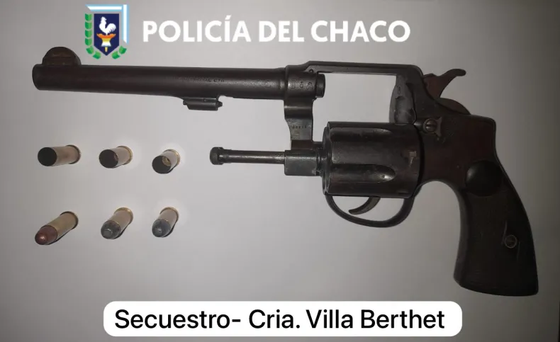 Entre sus prendas, los agentes hallaron un arma de fuego, un revolver calibre 38 largo con seis cartuchos, tres percutados y tres sin percutar.