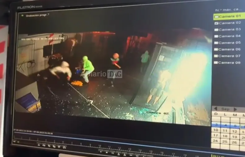 Según se pudo reconstruir en base a las imágenes de las cámaras de seguridad que registraron el accionar de la banda, al menos siete jóvenes rompieron la vidriera del local con un objeto contundente y, en menos de 20 segundos, arrasaron con la mercadería a su paso.
