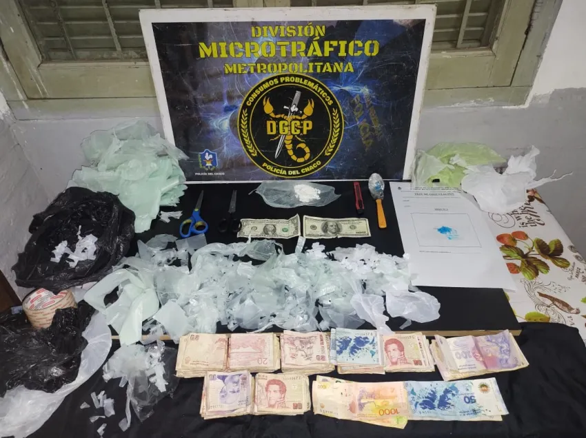 Inmediatamente el personal secuestro la droga, como así también, poco más de $ 7000, 100 dólares y elementos de corte.