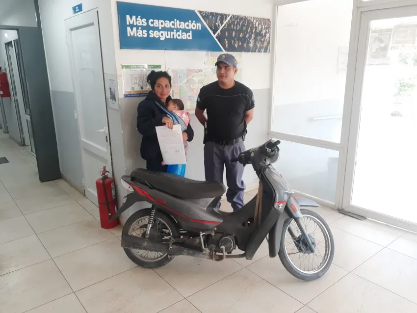 La mujer se presentó en la comisaría a eso de las 7 de la mañana y, con la información que aportó, los agentes correspondientes al Servicio Externo de la Comisaría, que estaban realizando tareas preventivas por las elecciones, iniciaron una investigación y se dieron cuenta que en el barrio Camalote una pareja ofrecía a la venta una motocicleta de características similares.