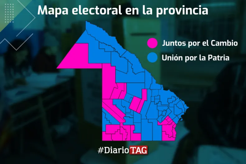 Siguiendo esta línea, se realizó un mapa político de cómo quedo con el escrutinio provisorio definitivo la gobernación y la intendencia en las diferentes localidades.