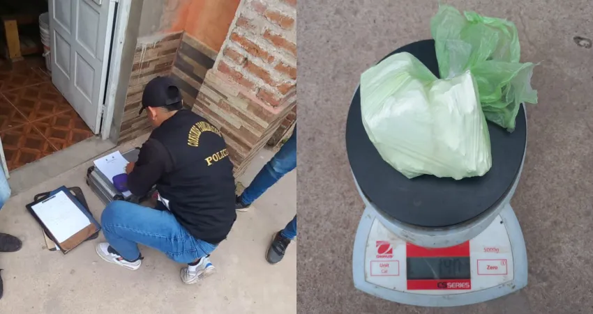 La policía secuestró en la mencionada vivienda una bolsa de polietileno conteniendo en su interior una sustancia blanquecina compacta, símil a cocaína arrojando un peso total de 140 gramos, que sometida a prueba de narco test arrojó resultado positivo para cocaína.