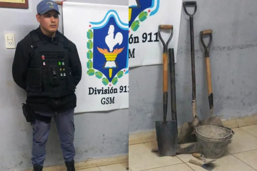 Se trató de un menor de 16 años que tenía en su poder un cuchillo. En el lugar secuestraron tres palas, un pico, una cuchara y una espátula.