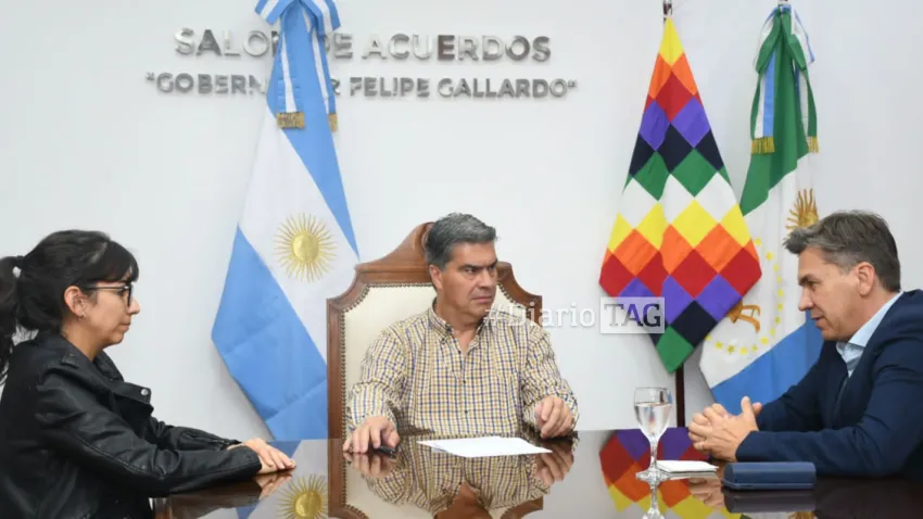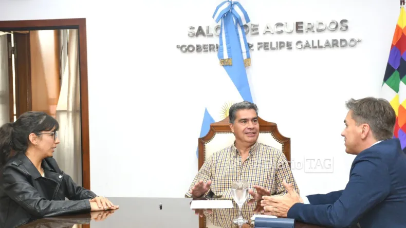 Este es el primer encuentro entre ambos luego de las elecciones y se llevó a cabo en el Salón de Acuerdos "Gobernador Felipe Gallardo", duró alrededor de 20 minutos y contó también con la presencia de la actual vicegobernadora Analía Rach Quiroga.