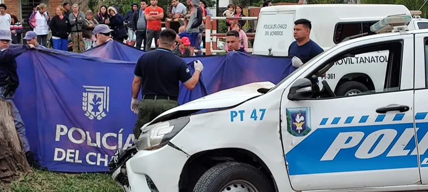 El patrullero pertenece a la Comisaría Quinta y colisionó contra una motocicleta 110 cilindradas, en la que viajaban dos personas adultas, una mujer y un hombre de 43 años. Ella perdió la vida en el acto y mientras que el hombre fue trasladado al Hospital Perrando con traumatismo cerrado abdominal.