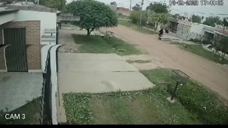 Una cámara de seguridad captó el momento en que la mujer llega a su vivienda y enseguida es abordada por los motochorros que aparentemente la venían siguiendo, uno de ellos bajo de la moto y tras agarrar el vehículo de la mujer huyó del lugar mientras que el otro siguió su camino.