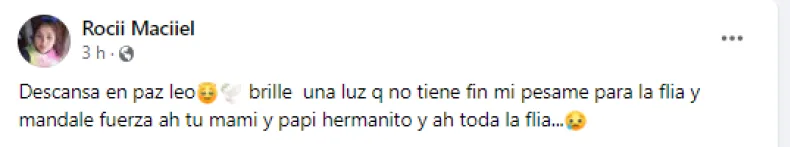 "Descansa en paz Leo, brilla una luz que no tiene fin. Mi pésame para la familia y mandale fuerzas a tu mami, papi, hermanito y a toda tu familia", publicó una mujer en Facebook.
