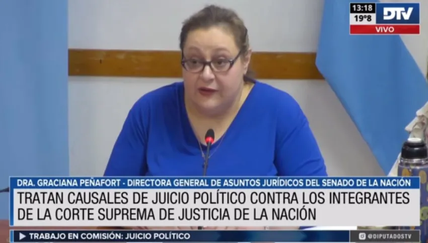 En primer lugar, expuso la directora General de Asuntos Jurídicos del Senado de la Nación, Graciana Peñafort, quien se refirió a su rol institucional: "Hay una vacante de la Cámara alta que no puede ser cubierta. El Senado aprobó la designación del senador nacional Martín Doñate (Frente de Todos) como representante de la última minoría que quedaba designar". "Hoy el Consejo de la Magistratura funciona con 19 miembros y no con 20 como estaba ordenado", afirmó.