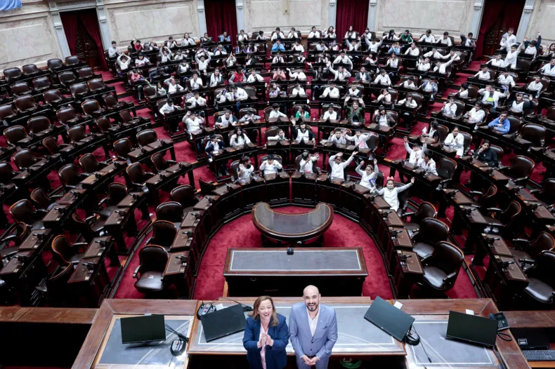 Cecilia Moreau entregó a Abel Pintos la mención de Honor "Juan Bautista Alberdi" en la Cámara de Diputados
