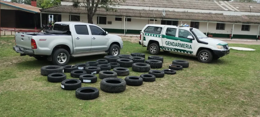Como resultado de la inspección del rodado, los efectivos detectaron que los ciudadanos trasladaban un total de 30 cubiertas, sin la documentación que avale el traslado de manera legal.