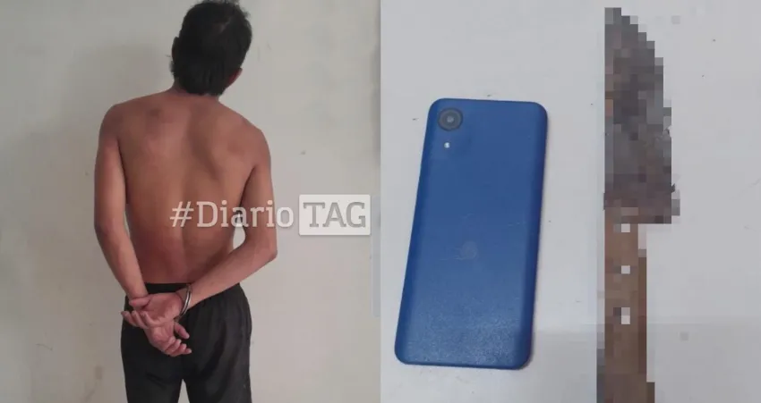 Fue así que se hizo presente en el lugar efectivos del Cuerpo de Operaciones Motorizadas (COM) quienes alcanzaron y redujeron a un joven de 21 años de edad, domiciliado en el Barrio Obrero, identificado como F.D.P. alias "Ojito" a quien se le secuestró un celular marca Samsung A3, color azul oscuro y un cuchillo tipo carnicero, con mango de madera.