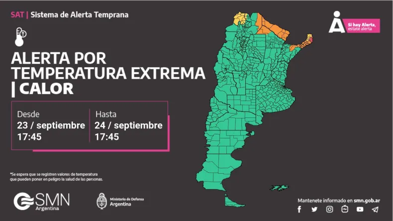 La alerta naranja implica un "efecto moderado a alto en la salud", lo que significa que pueden ser olas de calor peligrosas para los grupos de riesgo. La provincia se encontrará bajo esta alerta hasta las 17:00 de la jornada de este domingo 24 de septiembre.