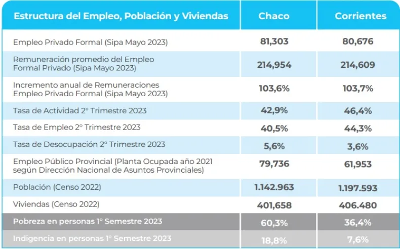 "Chaco supera a Corrientes en la creación de Empleo Privado Formal y también en la percepción promedio que reciben las y los empleados. Además, en relación a la población, presentamos una mayor cantidad de trabajadores tanto en el sector privado como en el público", sostuvieron.