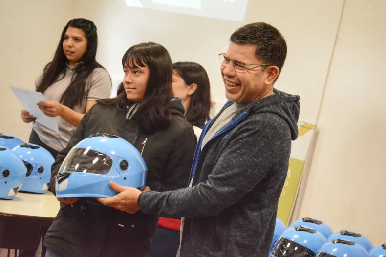 Como parte de esta instrucción para la obtención de la primera licencia de conducir, el subsecretario de Tránsito comunal, Matías Breard, informó que se entregaron cascos a aquellos motociclistas que hicieron ese trámite.