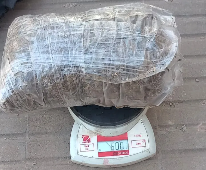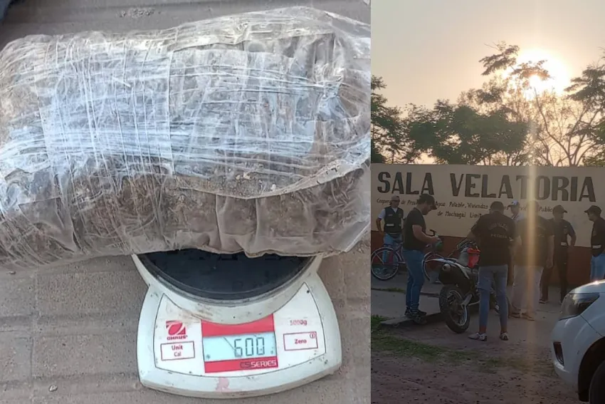 Los agentes procedieron a identificarlo y a inspeccionar lo que escondía dentro de la bolsa: se trataba de un paquete sellado transparente envuelto en cinta adhesiva, conteniendo cogollos de marihuana con un peso de 600 gramos.