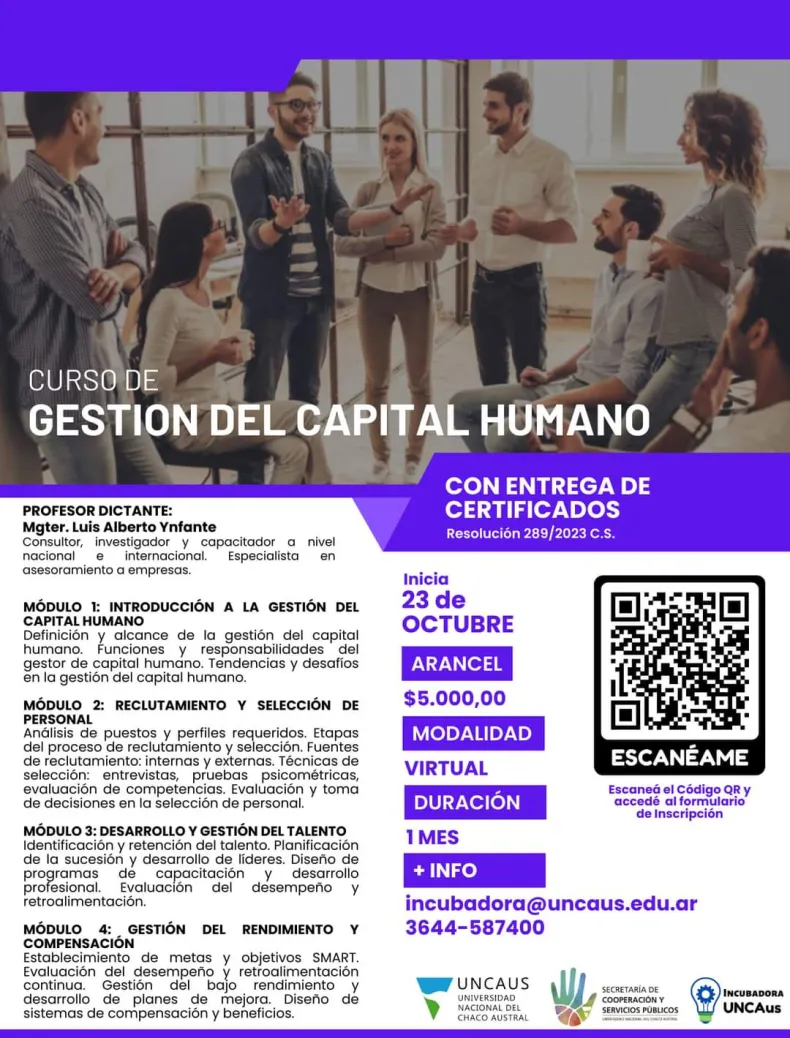 Nuevo curso virtual de la UNCAUS: gestión del capital humano
