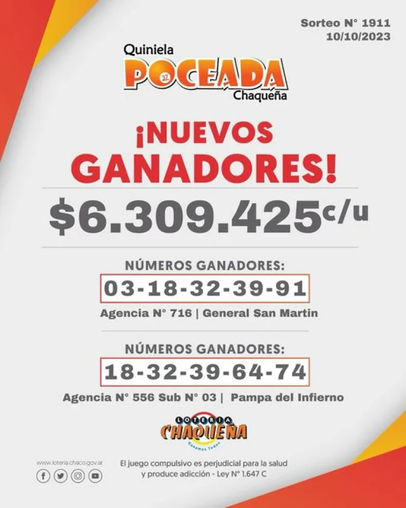 El sorteo de este martes de La Poceada Chaqueña dejó dos ganadores en la provincia: en esta oportunidad la suerte llegó a las localidades de Pampa del Infierno y General San Martín. Ambos alcanzaron un premio superior a los 6 millones de pesos.