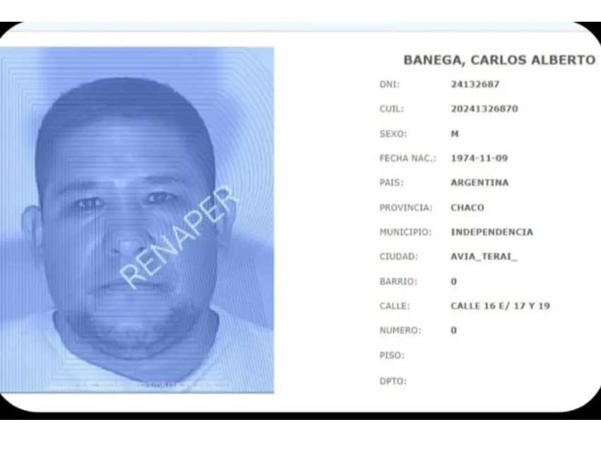 Ahora el Ministerio de Seguridad de la Provincia del Chaco ofrece una recompensa de tres millones de pesos para quien aporte datos certeros sobre su paradero.Las placas con la foto de Carlos Alberto Banega alias "Cuchina" rápidamente se viralizaron en las redes sociales.