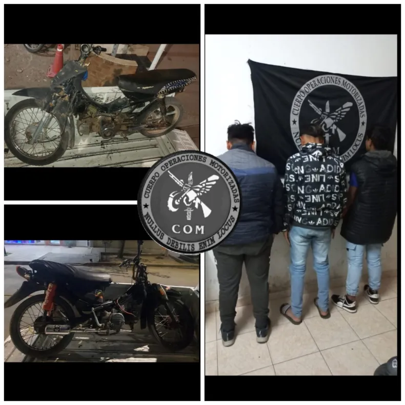 Una de las detenciones se produjo en el Barrio Evita, donde personal del Cuerpo de Operaciones Motorizadas (COM) procedió la demora de un joven identificado por su alias "Gitano" que tenía en su poder una moto sin marca visible y sin llave de ignición, sin chapa patente. Tras su detención se determinó que era buscado en otra causa, por lo que fue detenido y puesto a disposición de la Justicia.
