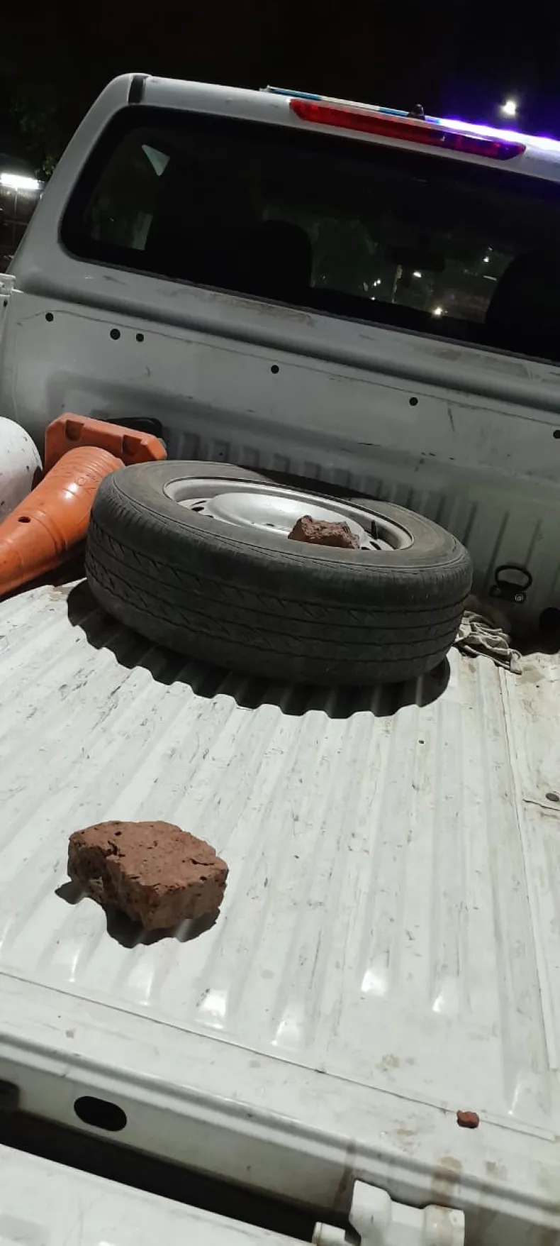 Los agentes demoraron a un joven de 22 años en poder de un arma de fuego de fabricación casera tipo "tumbera" con un cartucho sin percutar calibre 16. Ante esto, el grupo de personas comenzó a arrojar piedras a los móviles policiales.