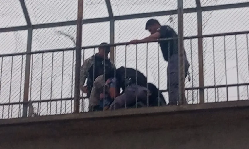 Cuando llegó la policía, vieron a un hombre mayor de edad quien tenía una soga atada a su cuello y otro extremo sujeto a los hierros de la pasarela. Los efectivos del COM estuvieron mediando varios minutos con esta persona para que desista de su accionar, pero obtuvieron una respuesta negativa.