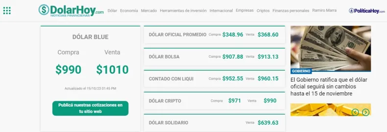 Es así, que este jueves subió exponencialmente su precio y cotiza en estos momentos el dólar blue a $ 1010 para la venta y $ 990 para la compra.