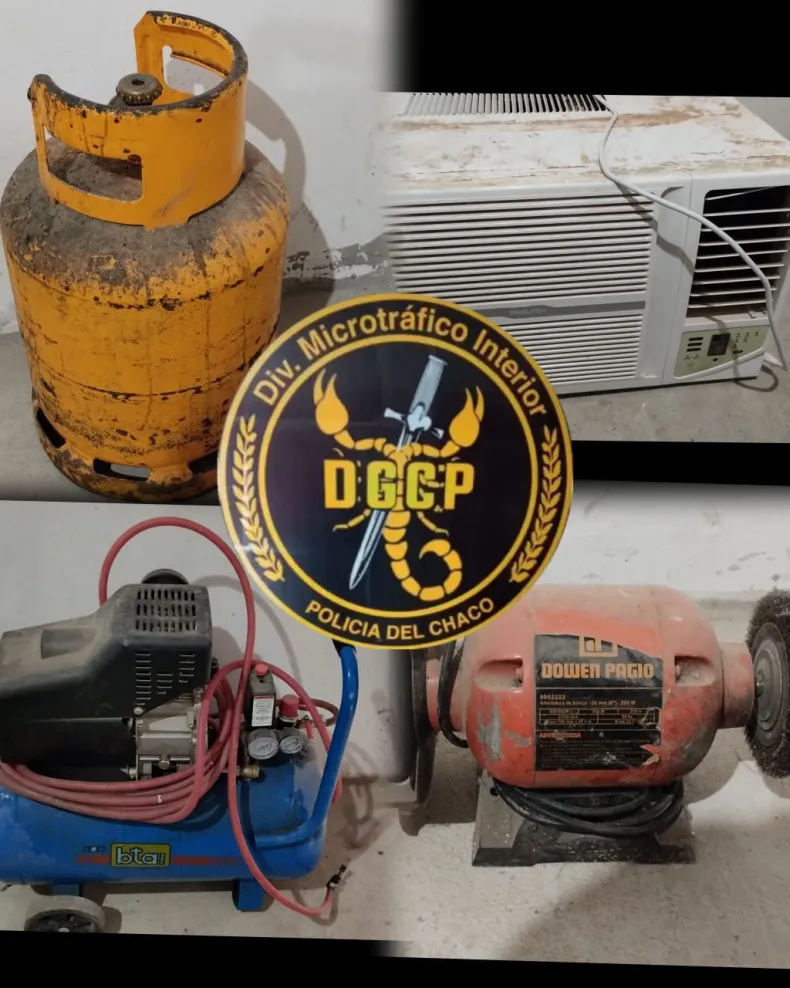 De la inspección realizada en ambos domicilios, se procedió al secuestro de dinero en efectivo por la suma de $55.560, un DVR con disco duro conteniendo material fílmico, bolsas y recortes similares a las encontradas en la camioneta, y elementos de dudosa procedencia entre los que se encontraban un aire acondicionado tipo ventana, un compresor de aire, una amoladora con disco de corte y una garrafa que serán sometidos a una investigación para determinar su procedencia.