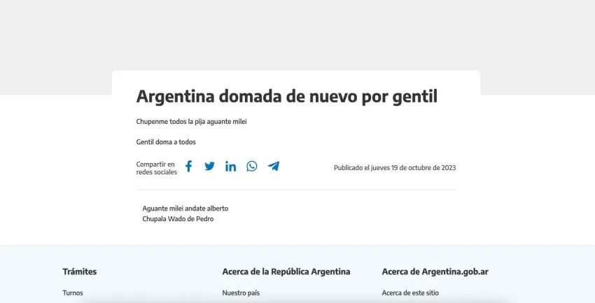 "Aguante Milei, andate Alberto": hackearon la web de argentina.gob.ar