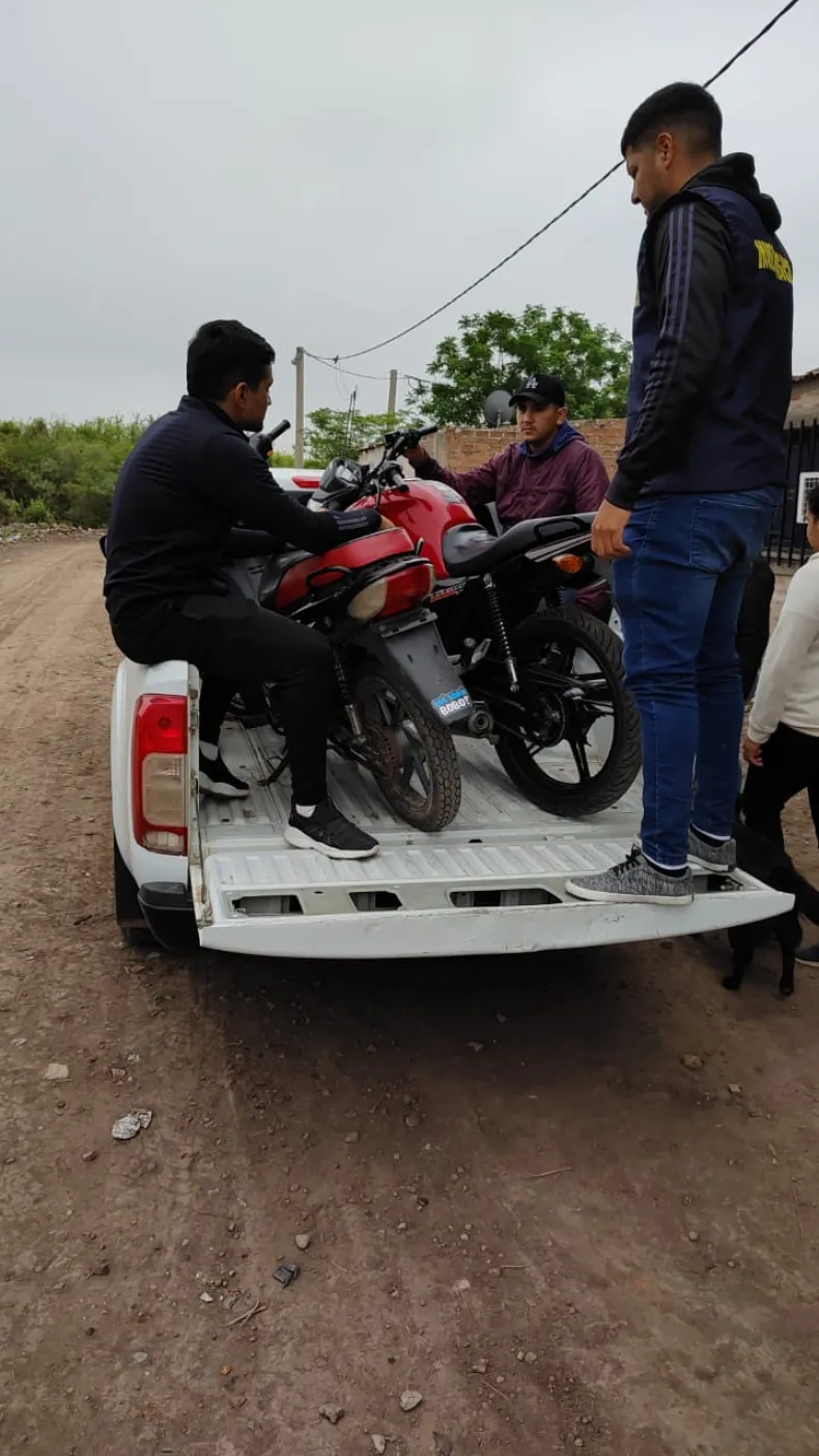 En el marco de esta investigación se llevaron a cabo dos allanamientos en los barrios Tiro Federal y Matadero respectivamente arrojando resultado negativo en ambos domicilios. Sin embargo, en uno de ellos, procedieron al secuestro de una motocicleta marca HONDA TITAN 150cc., color roja, el cual al ser verificado por personal presentaba una "base totalmente rebajadas que hizo desaparecer las numeraciones originales de fábrica (apócrifos)", una motocicleta marca GILERA SMASH 110cc., color gris y negro, el cual al ser verificado el motor presentaba también una "base rebajada que hizo desaparecer numeraciones originales y pegado con pegamento color gris (poxi acero) corte rectangular con otra numeraciones no originales".