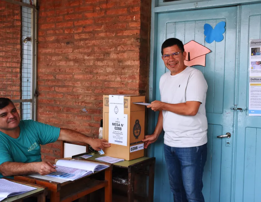El candidato a presidente del Concejo Municipal de Resistencia por la Corriente de Expresión Renovada (CER), Guillermo Monzón, emitió su voto para presidente de la Nación, en la Escuela N°557.