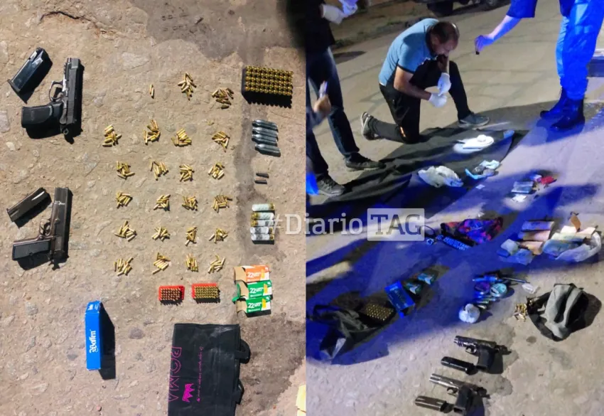 La mujer fue identificada como G.G.A. de 34 años, en cuyo poder se secuestró una moto 110cc. gilera smash. Del baúl procedieron al secuestro de dos armas de fuego una 9mm y la otra una pistola marca Bersa con su respectivo cargador, la suma de $ 638.800 (seiscientos treinta y ocho mil ochocientos), además de varios cartuchos de distinto calibre.