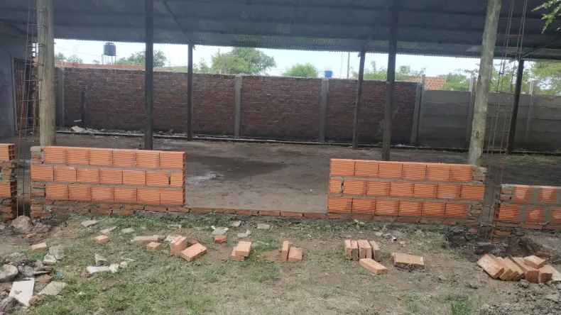 Se trata del centro comunitario "Divino Niño", en este momento la construcción está en la etapa del levantamiento de paredes, y para poder finalizar se necesita puertas y aberturas.