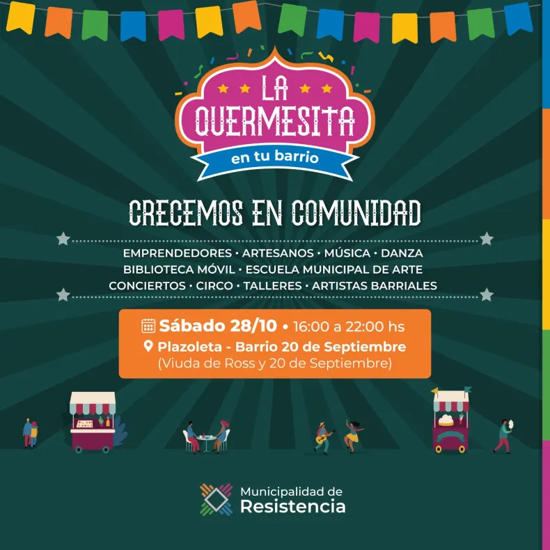El programa municipal "La Quermesita en tu barrio" se presentará este sábado en el barrio 20 de Septiembre. Se prevé la realización de distintos eventos para toda la familia, con acceso libre y gratuito. La cita será en el predio de la plazoleta sobre calle Viuda de Ross, de 16 a 22 horas.