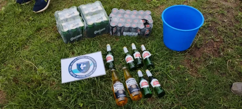 Frente al descargo judicial, los agentes se acercaron al lugar y constataron los hechos. A partir de ello, realizaron una investigación y verificaron las cámaras de seguridad. Luego, iniciaron rastrillaje por la zona, logrando incautar varias bebidas ocultas en las malezas.