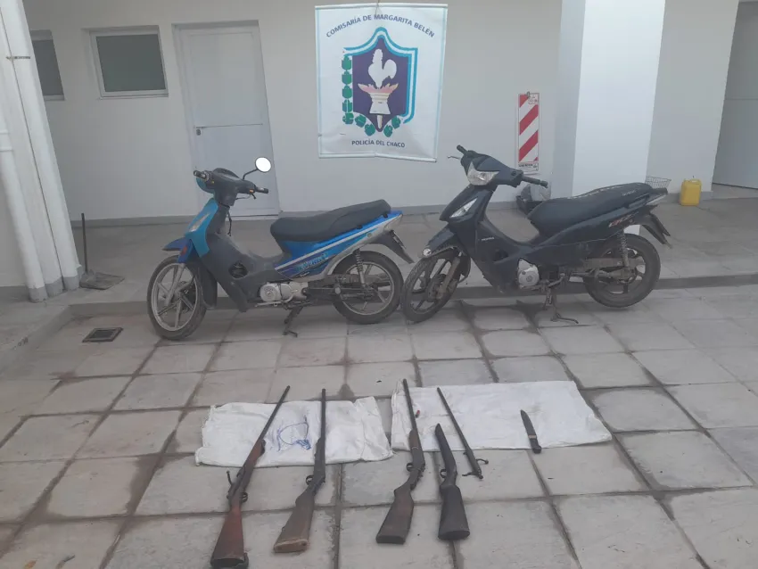 Además, en el proceso se secuestró el rodado en el que se transportaban, dos motocicletas, un cuchillo de 30 centímetros de hoja, un cartucho calibre 28 y tres celulares.