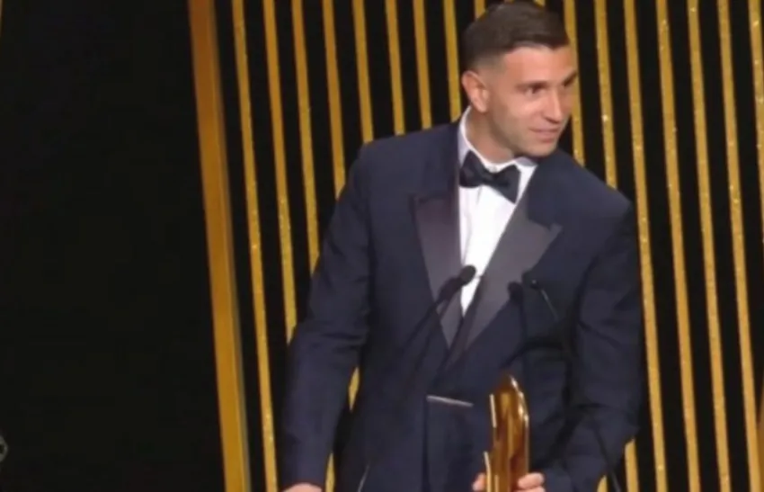 El premio Lev Yashin, en honor al gran arquero soviético, se lo entregó su papa Alberto, que ingresó por la parte trasera del escenario y se lo notó aún más conmovido que el futbolista del Aston Villa. "Una sorpresa, me sigue a todos. Sin mis compañeros de Selección ni de Aston Villa, no sería posible. Es un mimo a mi carrera, lo importante es ganar en grupo, mi familia. Tengo dos hijos hermosos, mi hermano, mi viejo", declaró el marplatense.