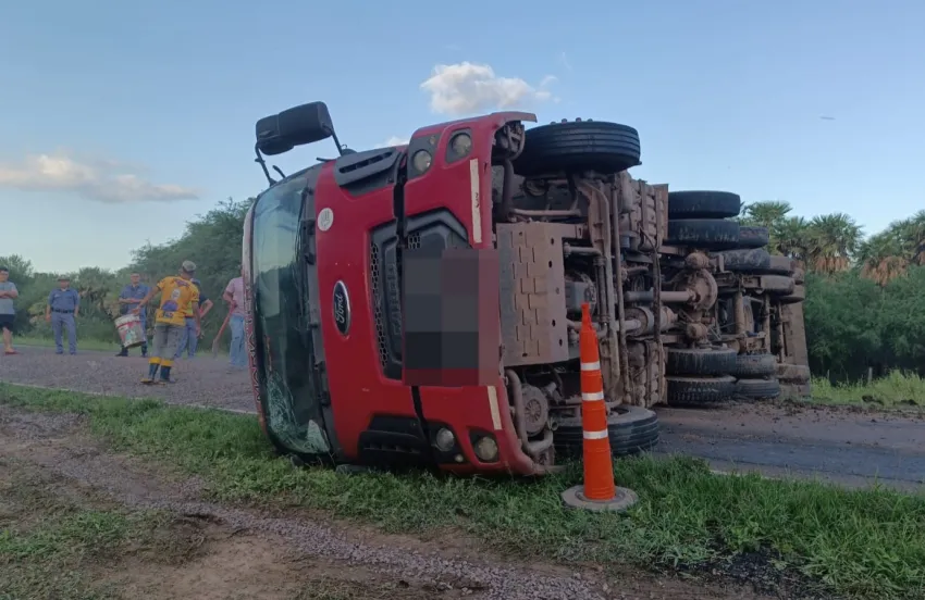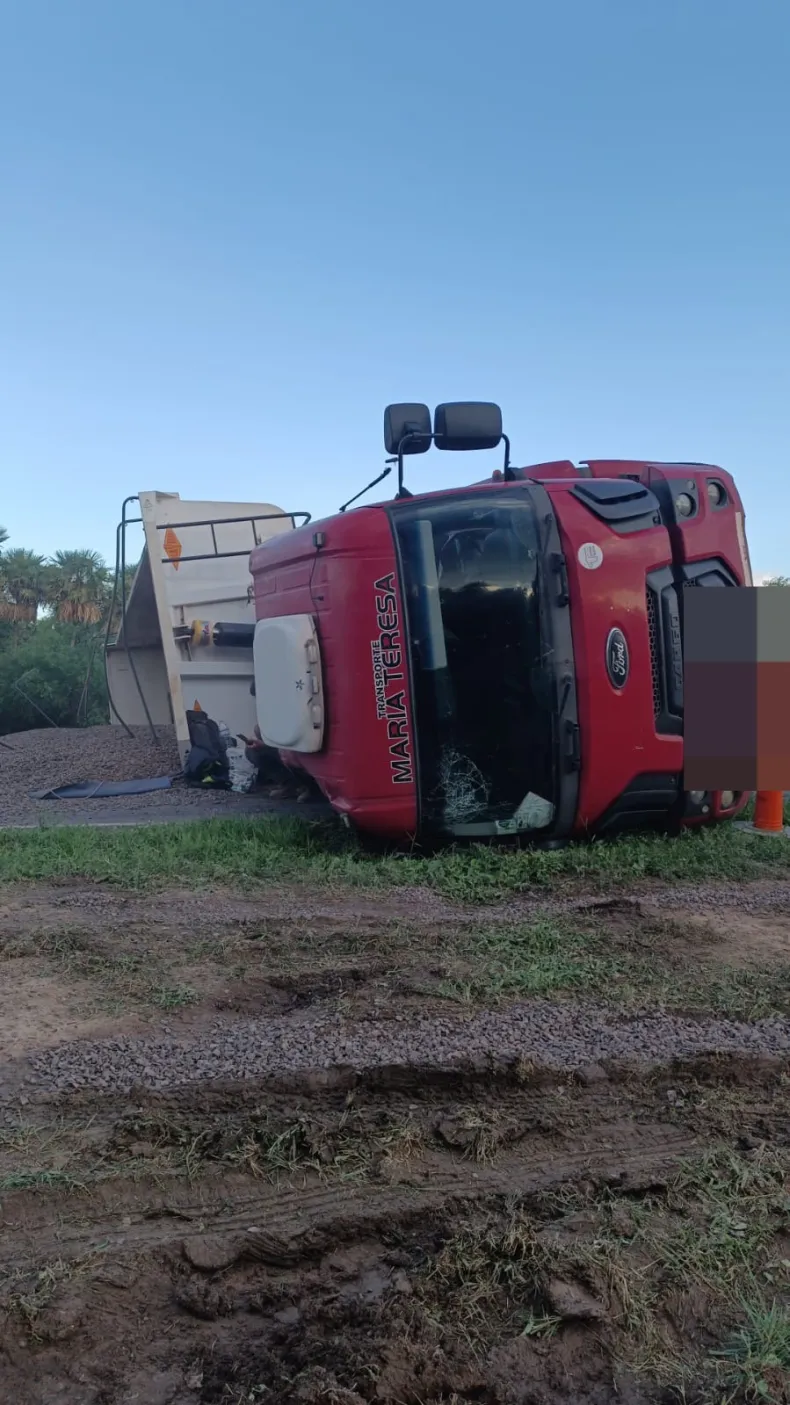Un camionero volcó en Ruta 90 al reventarse una de las cubiertas y perder el control del rodado